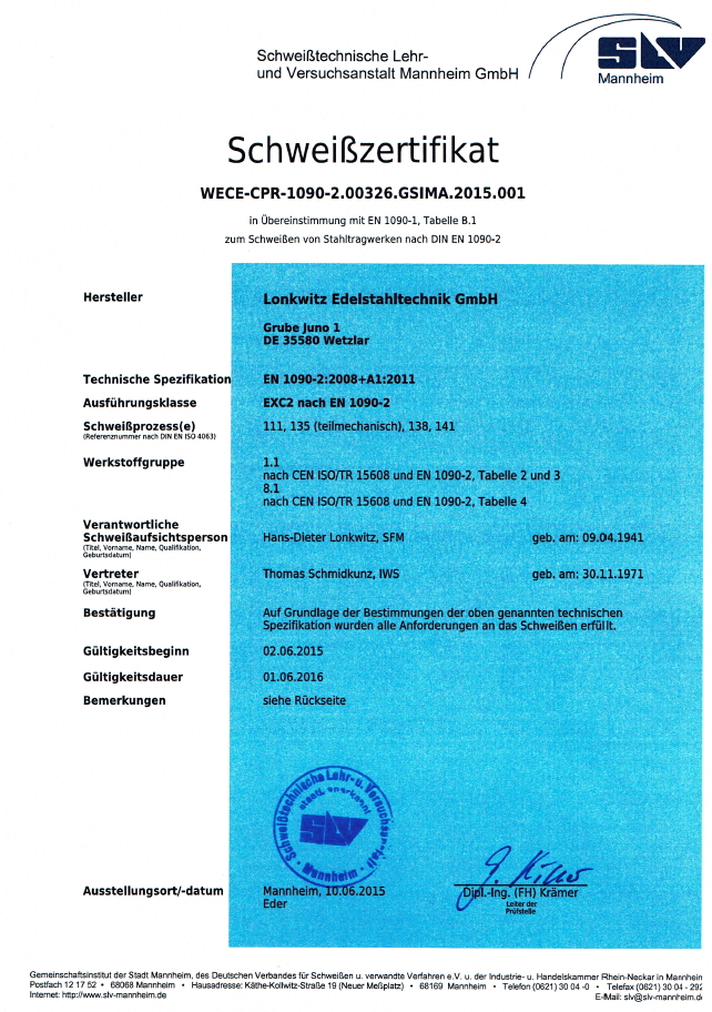 - nach DIN EN 1090-2, das betrifft das Schweißen im Stahlbau.